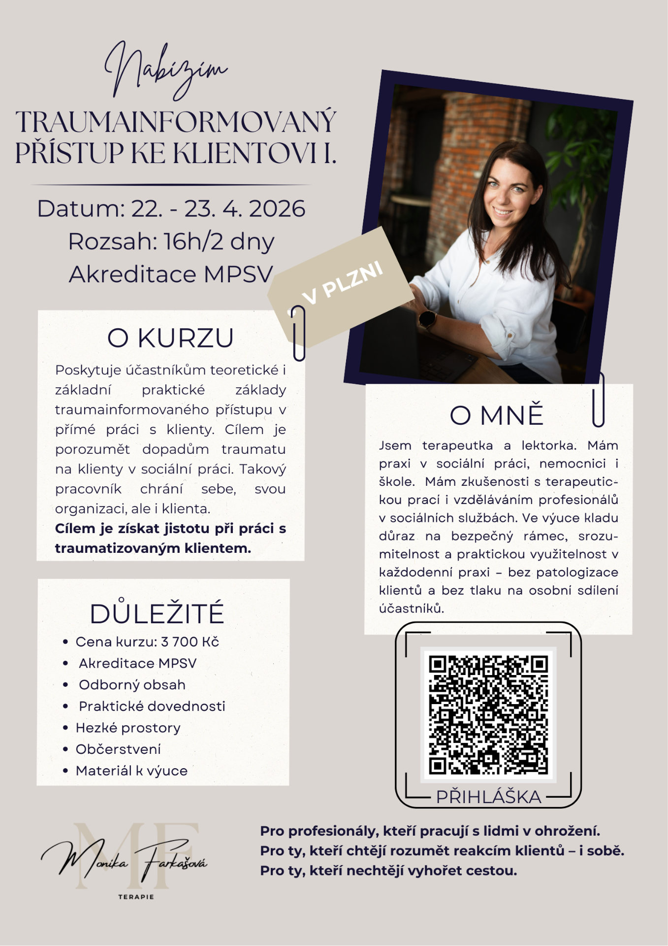 Máte zájem o uspořádání akreditovaného kurzu u Vás ve městě? Napište mi na email: poradenstvi.farkasova@gmail.com